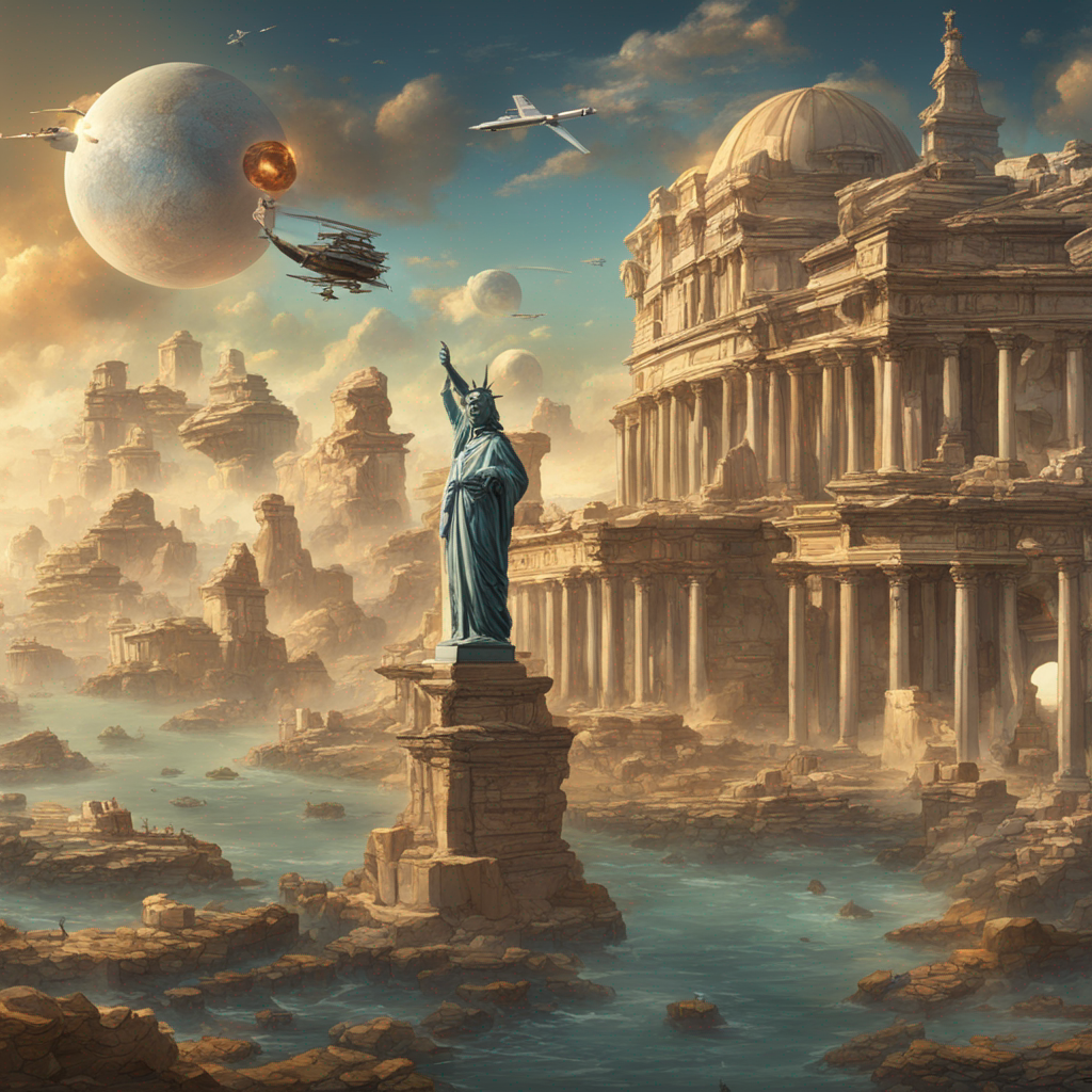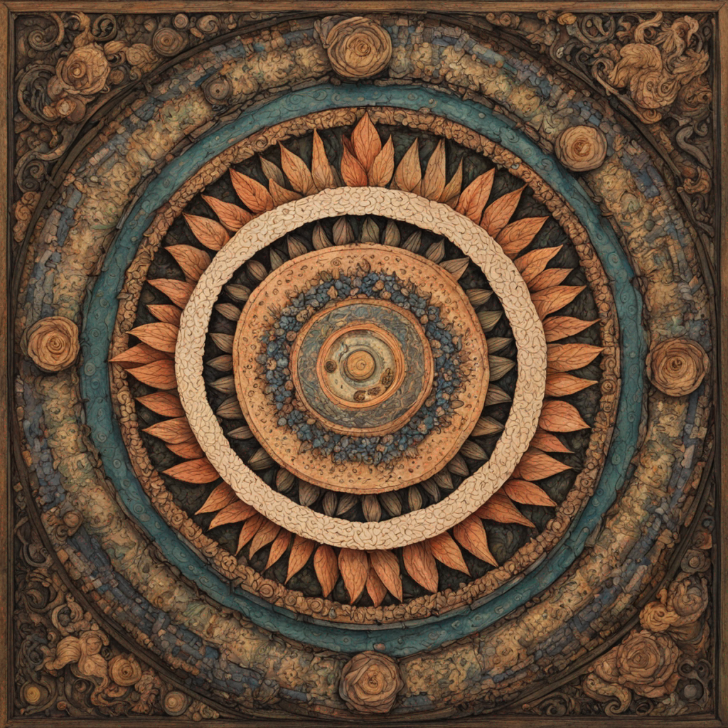 • Intricate mandala of nature, technology, and ancient relics