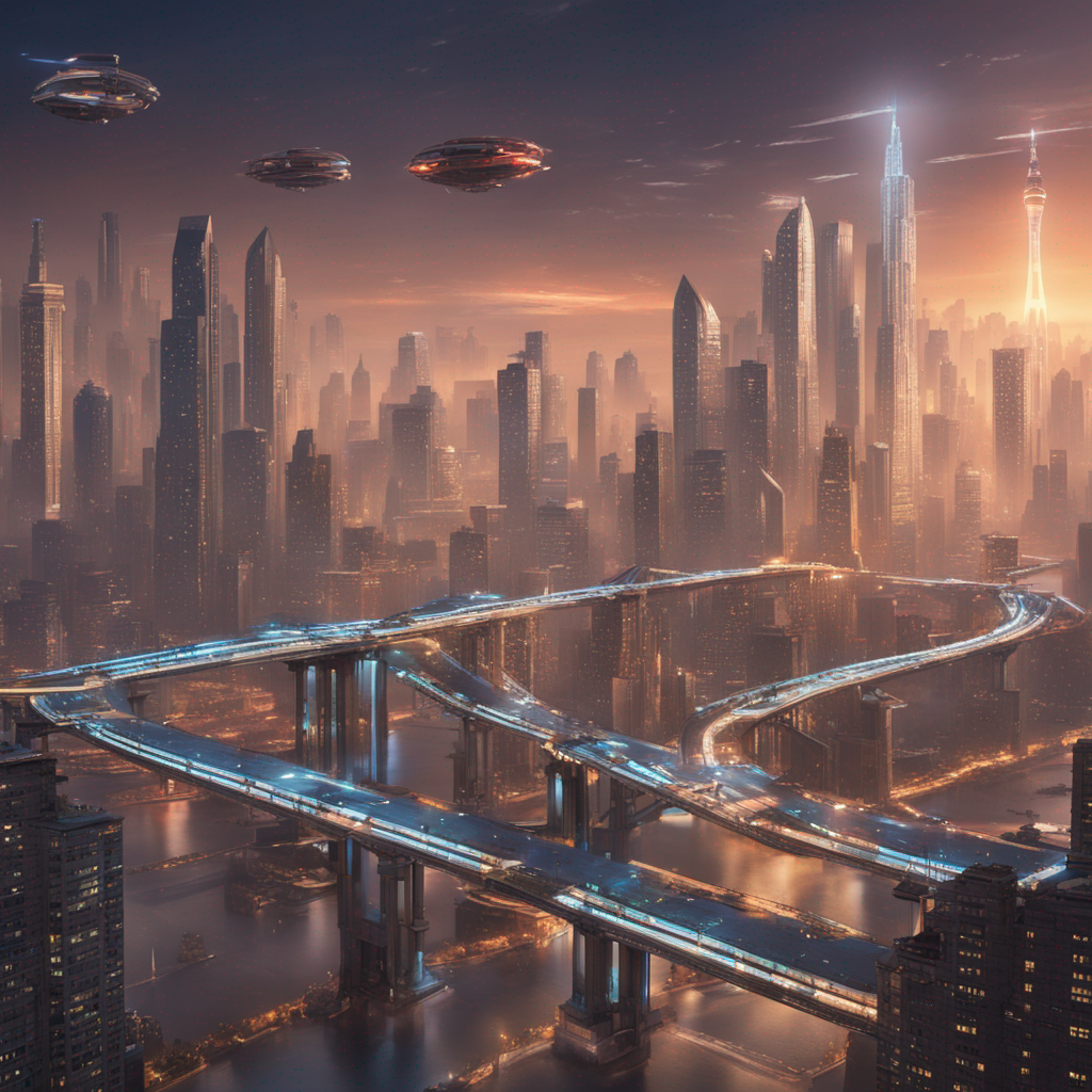 • A futuristic cityscape soaring above the skyline